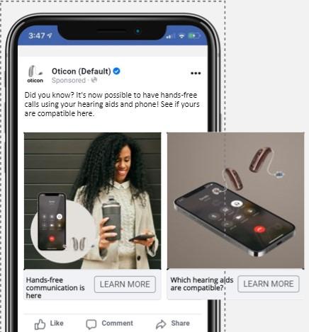 Here's a product page that builds on the BrainHearing campaign shown above, promoting our premium hearing aids.